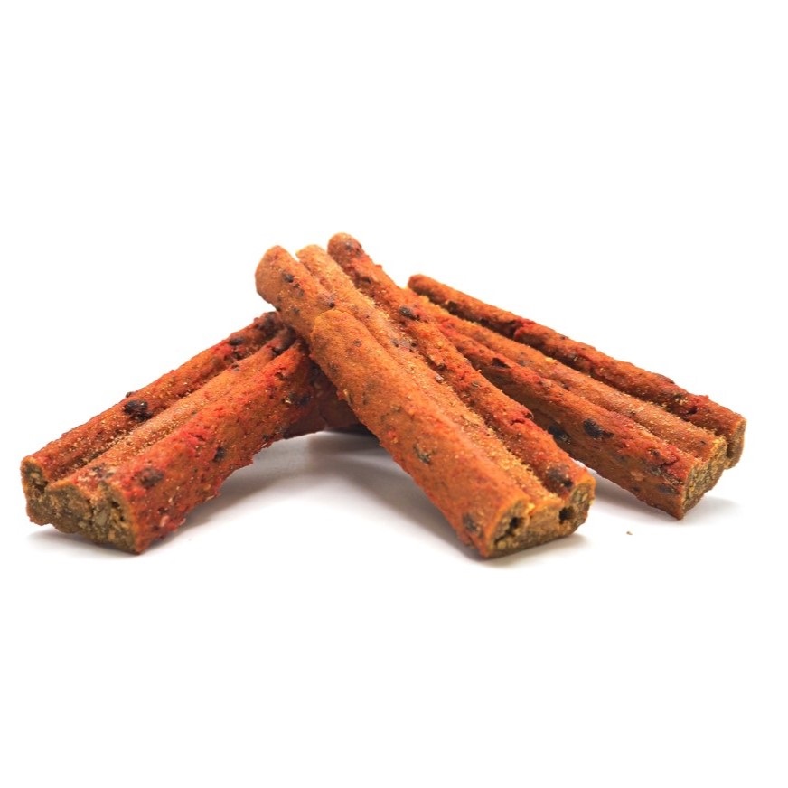 In unserem Bunte Ernte Riegel steckt alles, was man im besten Gemüse- und Obstgarten findet. Kartoffeln und Karotten liefern leicht verdauliche Energie und wertvolle Ballaststoffe für eine gesunde Verdauung. Rote Bete sorgt nicht nur für die appetitlich rötliche Farbe, sondern bringt wichtige Vitamine und Mineralstoffe mit. Getrocknete Aprikosen verleihen eine feine, fruchtige Note und liefern natürliche Antioxidantien. Ein Hauch Liebstöckel aus dem Kräutergarten verleiht dem Riegel seine milde Kräuternote und fördert Verdauung und Appetit. Leinsamen, Mariendistel- und Kürbissamen runden den Hundesnack ab – reich an Omega-3-Fettsäuren und pflanzlichem Eiweiß, unterstützen sie Haut, Fell und Stoffwechsel auf natürliche Weise.
